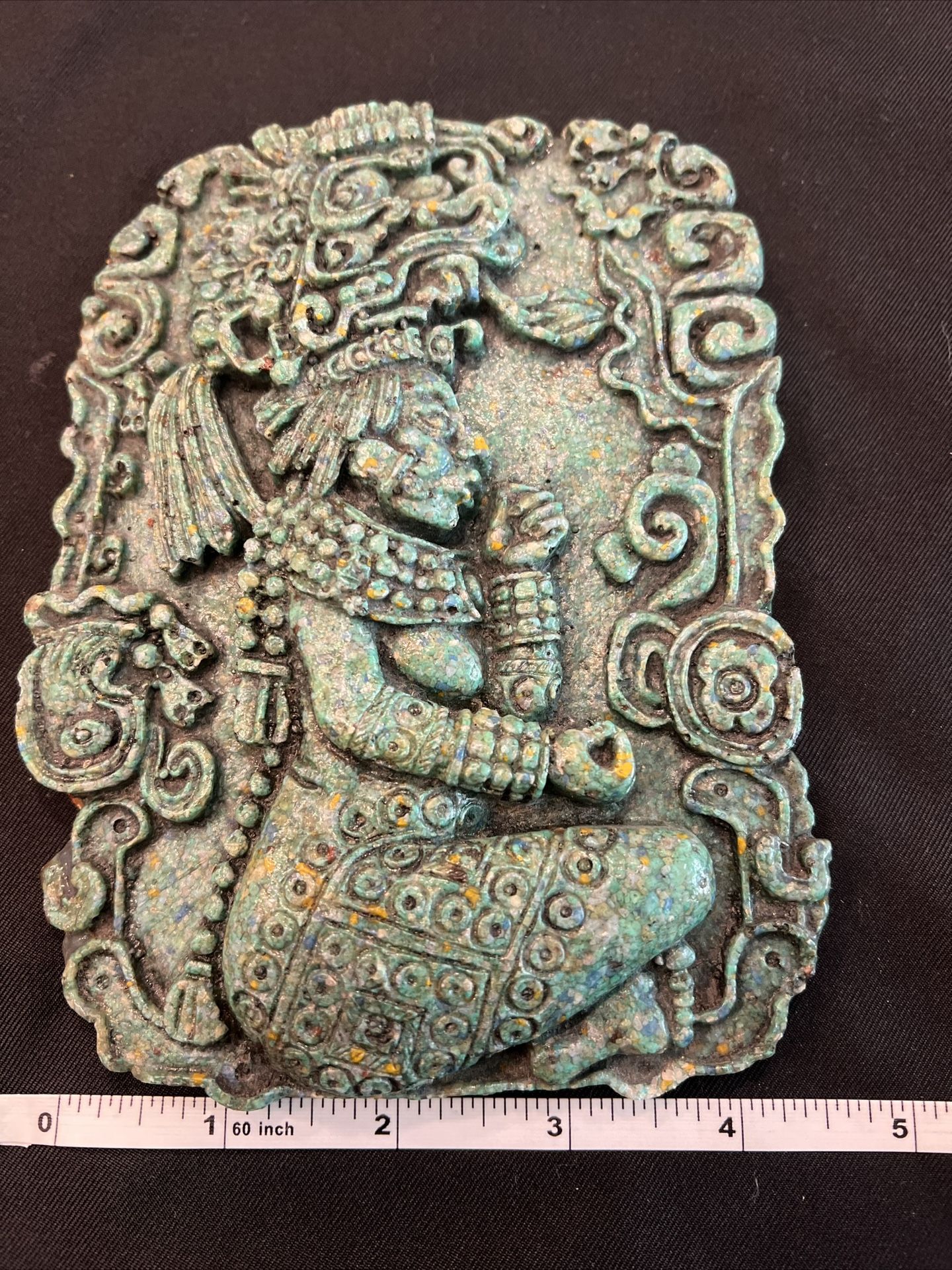 Add a touch of art deco to your wall with this stunning Mexican/Crushed Malachite Stone Wall Art Hanging Sculpture Plaque. This small, handmade sculpture features a 3d design and is made of stone material. The sculpture is perfect for those who appreciate unique and original art pieces. Previously owned please see pics for condition.