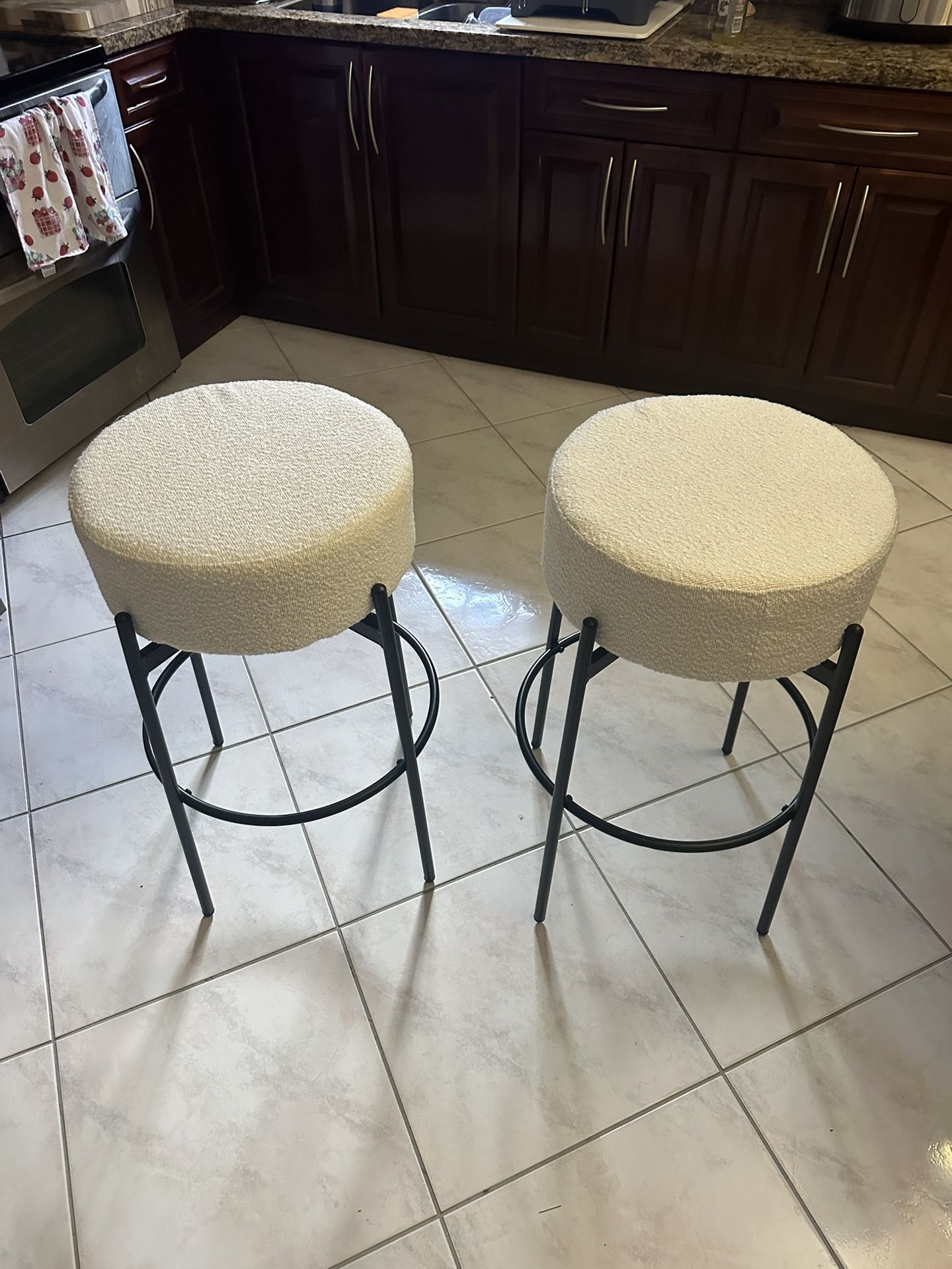 NEW AND NEVER USED 30” tall Product Dimensions 17.1"D x 17.1"W x 30"H Color Off-white Frame Material Metal Seat Material Type Boucle & Sponge Brand Flouki