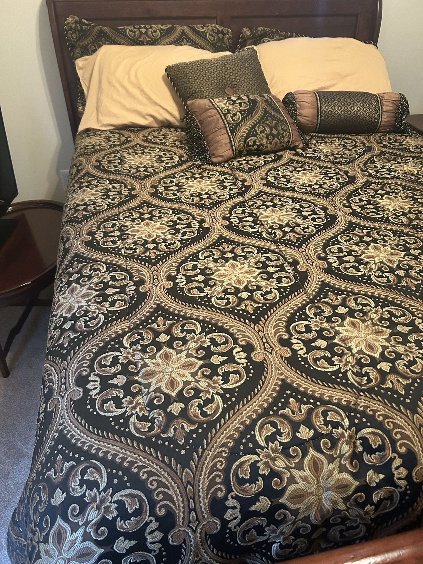 Real wood Queen bed set with mattress
