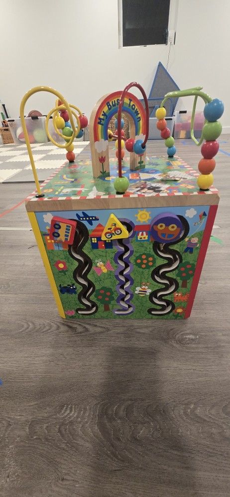 Selling our gently used toddler activity cube (details.below). Sells for $50+.. Pick up in NE Seattle near View Ridge Elementary School. ALEX Discover My Busy Town Wooden Activity Cube has many activities to keep your toddler engaged that are all part of an amazing journey of learning through play. This toy features a sturdy wooden base that will withstand even the most demanding trips into Busy Town. The multi-dimensional activity cube has five different sides of fun games for your little one; curvy bead mazes, peek-a-boo open and close doors, racing vehicle rollers, animal matching and ABC tiles. With so many different activities, your toddler is sure to stay entertained with this toy for hours. Stable, colorful and fun to look at, the activity center is made of sturdy wood and measures 16in. high by 12in. wide by 12in. deep. Recommended for children 12-months of age and up. Bright and cheerful solid wooden activity cube 5 sides of fun Oppenheim Toy Portfolio Gold Seal Award winner Includes 16x12x 12 inch wooden cube with curvy wire rides, peek a boo doors, spin and match animals, turn and learn ABC word tiles, and racing rollers Recommended for children 1 year of age and older