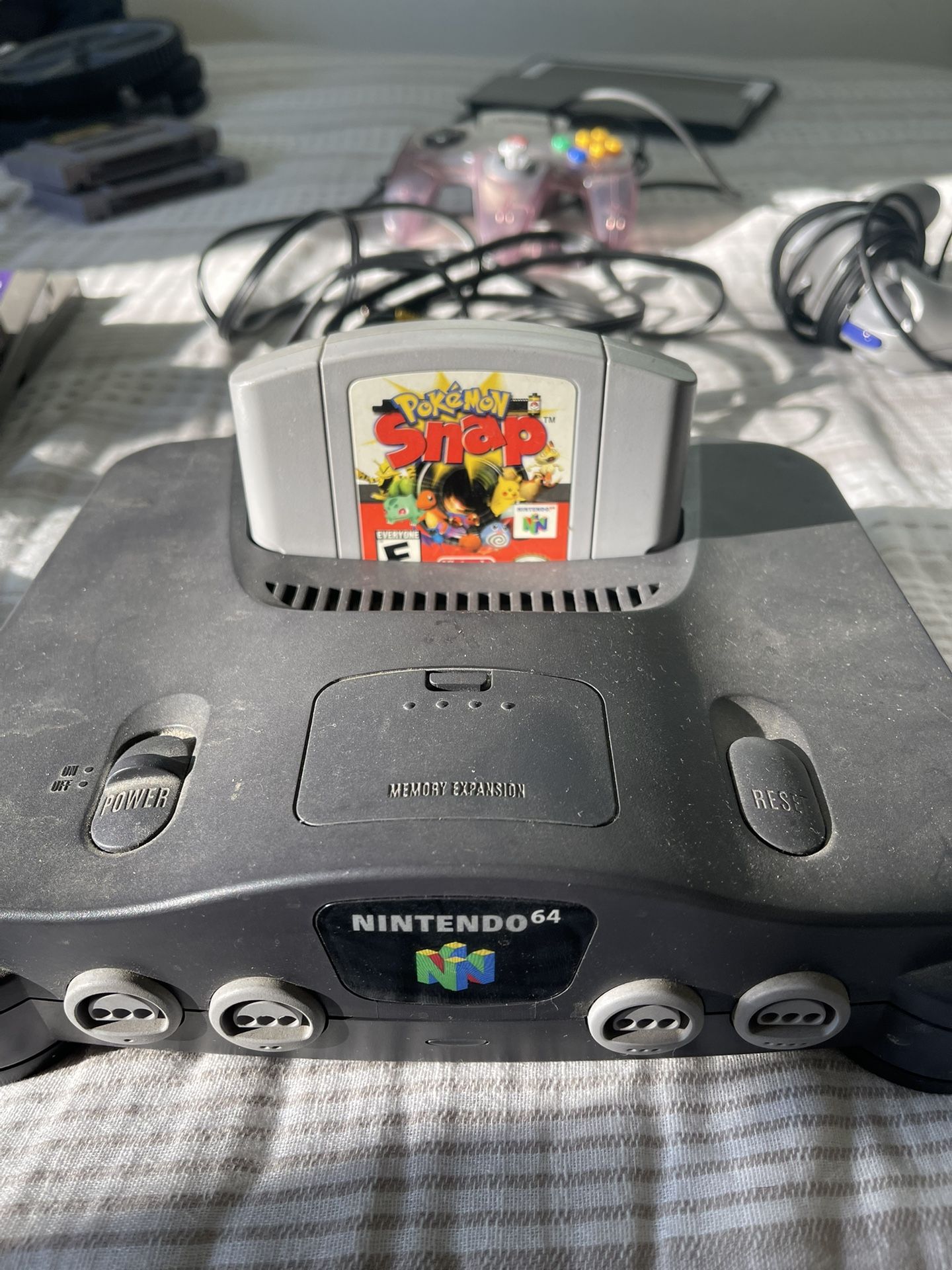Got some old consoles 64 w/ cables and pokemon snap-$100 Super nitendo w/out cables and mario all star/ star wars . - $100 Nes games bundle -$40