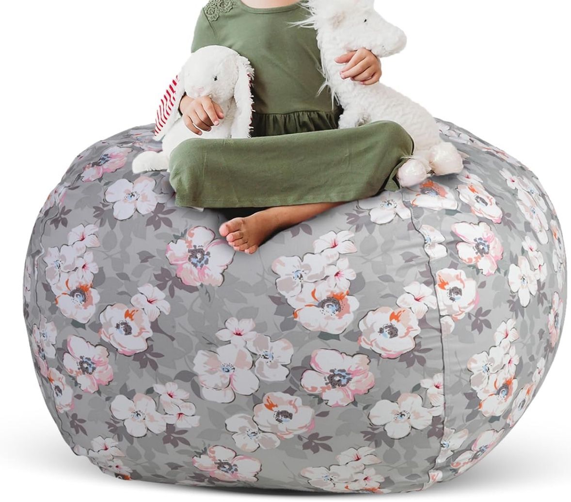 Creative QT Stuff ’n Sit Extra Large 38’’ Bean Bag Storage Cover for Stuffed Animals & Toys, Giant Beanbag Chair Kids, Ages 3-14, Bedroom Organizer Ho