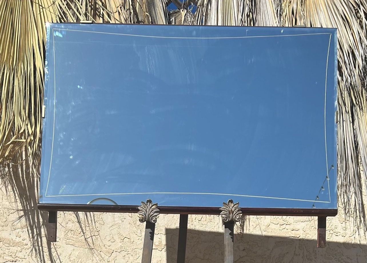 Introducing our exquisite Early 20th Century Rectangular Dresser Mirror with White Etched Detail. Crafted with precision, this gorgeous mirror atop a wooden stand exudes timeless elegance. Perfectly accentuated by the etching. height - 33” width - 50”