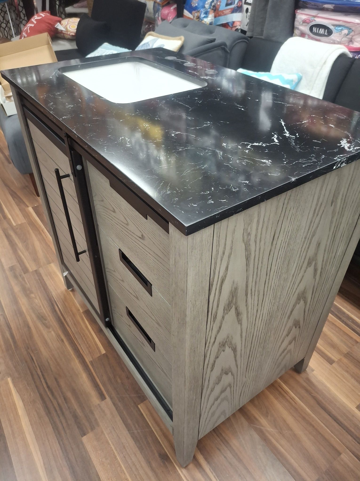 NEW bathroom vanity 3 holds for faucets 3 right drawers slide left door 36” width x 22” depth x 35” H 875 with DELTA FAUCET CROME, 2 handle lavatory ( 3553LF original price 899 only the faucet ) 575 We can deliver to your home Welcome to Alondra home fashion
