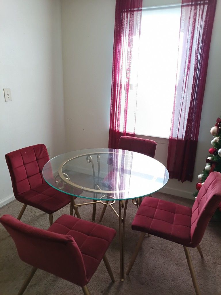 Needs a wipe down material is burgundy suede ! Pets in home but no smoke pickup only