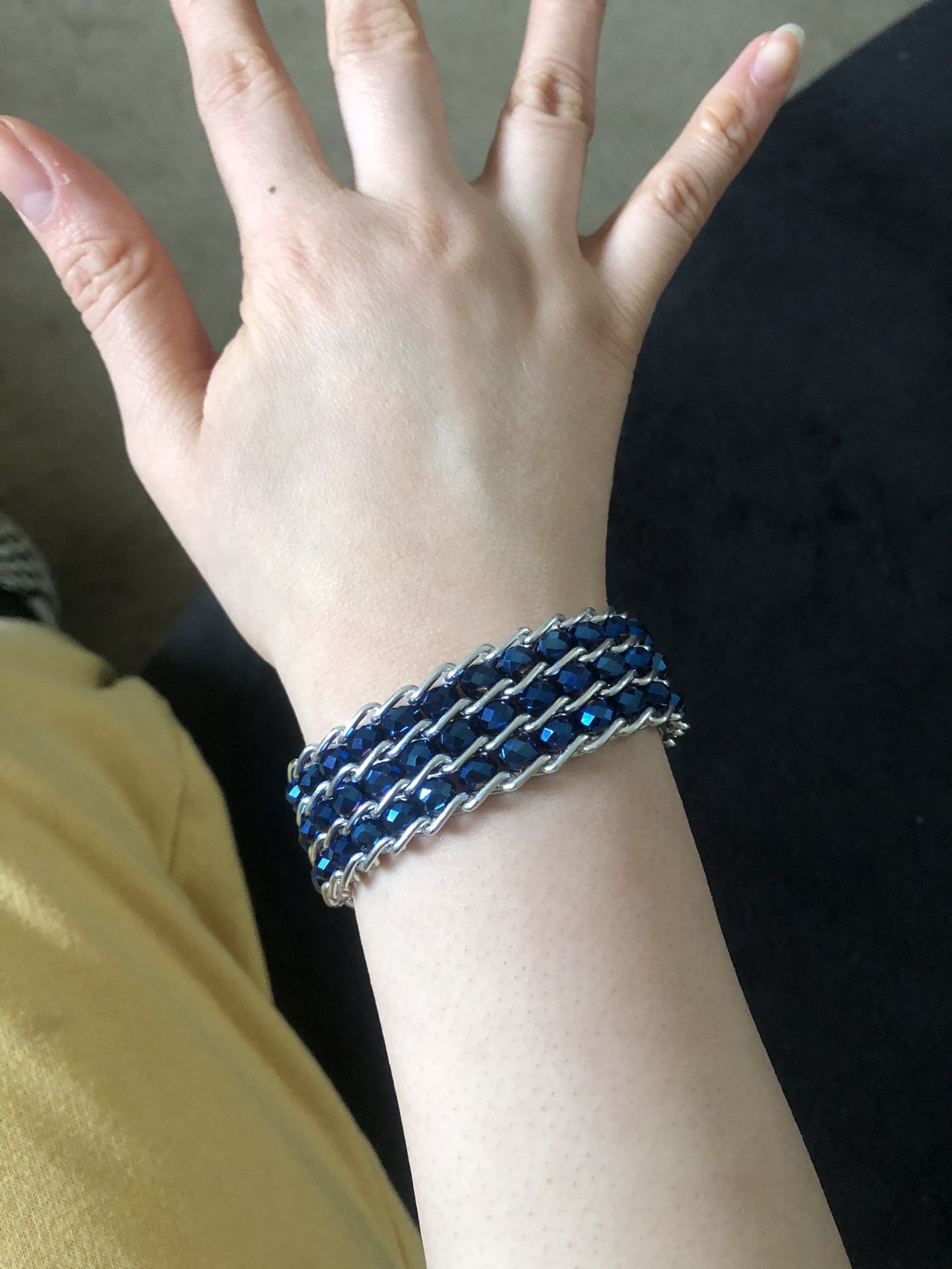 Blue and silver bracelet Blue Crystal Glass Three Rows Beads Bracelet Measurements in photo Brand new without tags never worn except for photo Geometric Bracelet Chain link bracjelet Chunky bracelet , statement bracelet