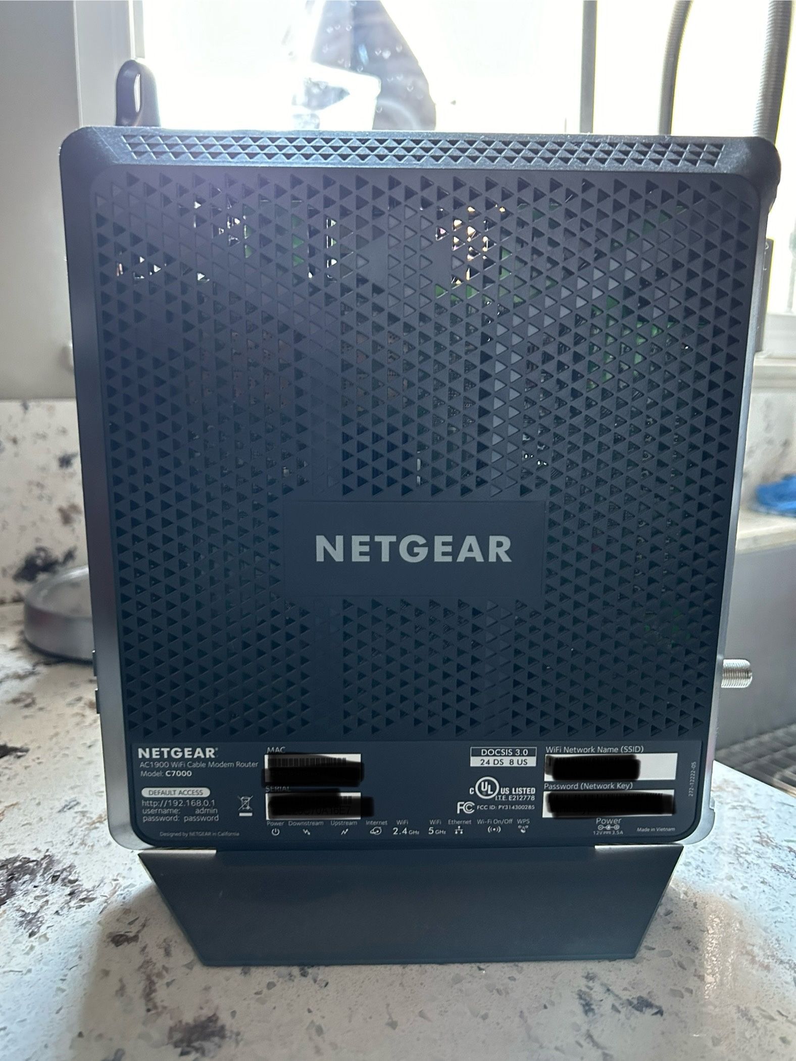 The Nighthawk Dual-Band AC1900 Router with 24 x 8 DOCSIS 3.0 Cable Modem delivers WiFi speeds of up to 1.9Gbps. It ensures uninterrupted HD video streaming with 24x8 channel bonding Power adapter included