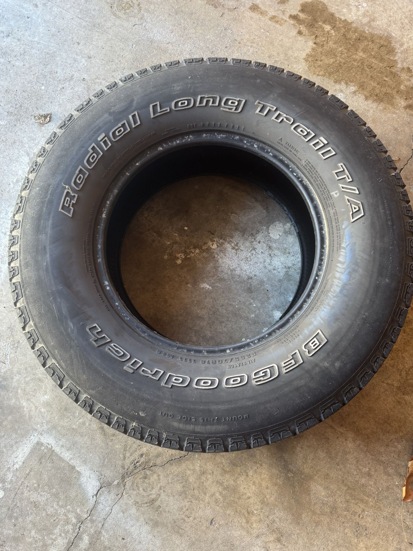 BFGoodrich Radial Long Trail T/A tire in good condition.