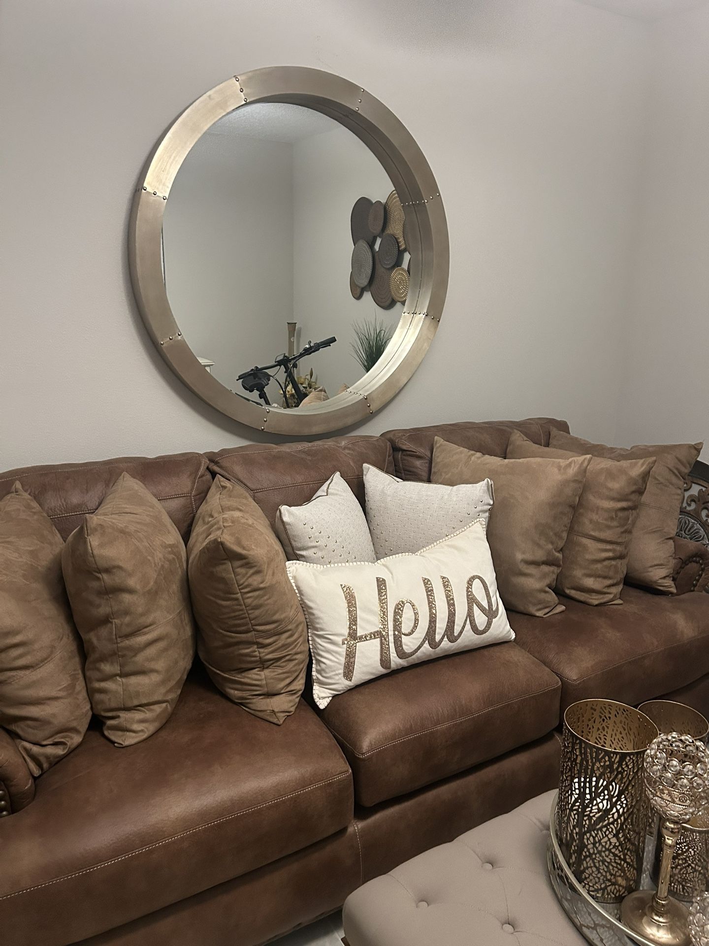 Brown sofa never been used only fir decoration, comes with pillows.