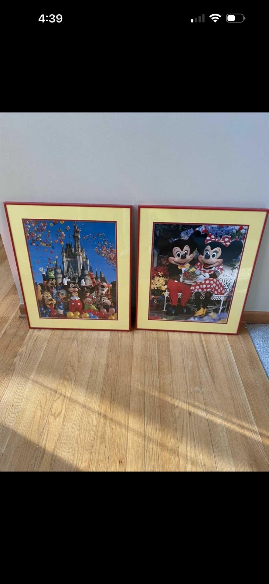 Beautiful Disney Micky and Minnie Mouse framed glass wall pictures. They measure 24”high x 20”wide. $25 each or $50 for both. In new condition and comes from smoke and pet free home. Price is firm. Porch pick up with cash only.