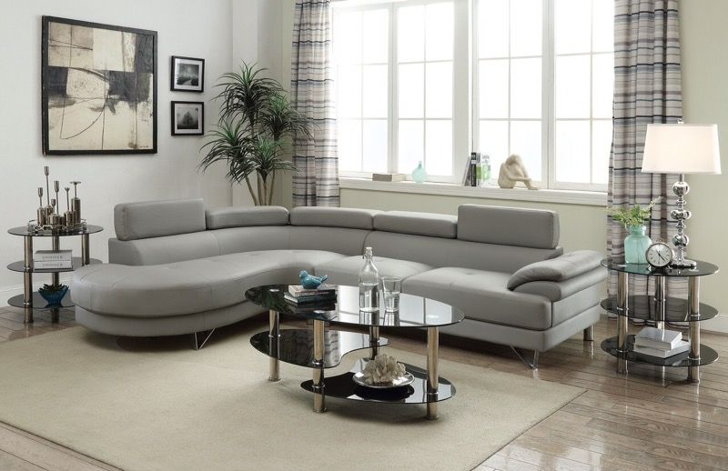 Contemporary Grey Leatherette Sectional (NO CREDIT CHECK FINANCING)
