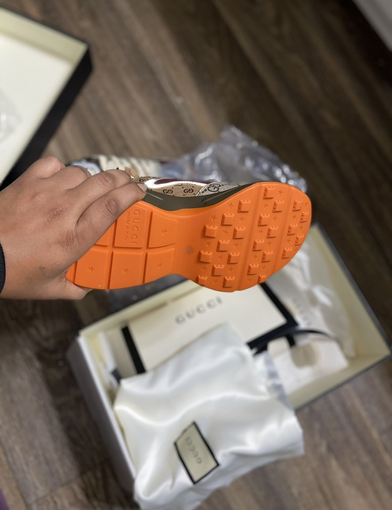 🧡Women’s Gucci Rhyton Sneakers🧡 Sizes 6 EU 36 Brick Red Original GG canvas 🔸Beige/ebony and beige/blue GG Supreme canvas, beige/brick red Original GG canvas and burgungy, brown and green mini GG jacquard fabric 🔸Reflective fabric trim 🔸Gucci logo tag 🔸1.6" height 🔸 Made in Italy 🔸BRAND NEW NEVER WORN 1️⃣0️⃣0️⃣ % AUTHENTIC 🔸Includes dusk bag, extra gucci shoe laces, shoe plastic bag, box.
