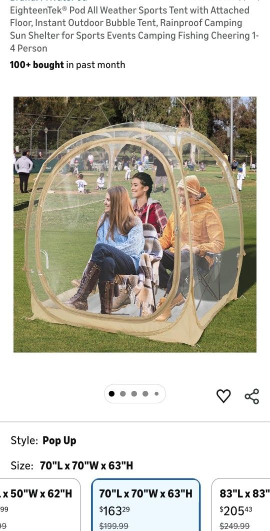 EighteenTek® Pod All Weather Sports Tent with Attached Floor, Instant Outdoor Bubble Tent, Rainproof Camping Sun Shelter for Sports Events Camping Fis