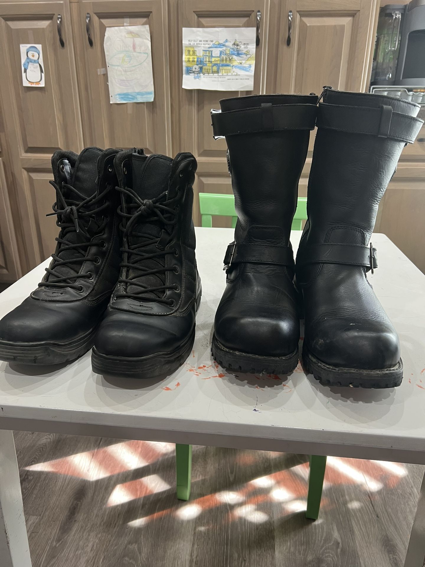 One tall size 11 EEE black boots One shorter size 11 wide black boots