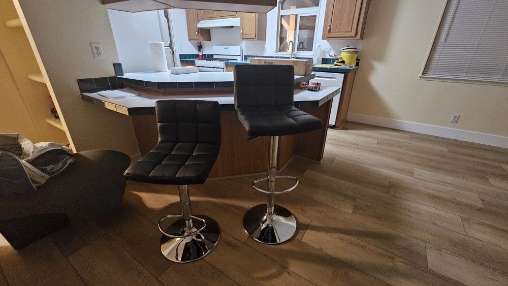 Very nice, adjustable height bar stool, kitchen nook chairs. 23"-32" Tall Changing my style, so decided against these. They're like new, only sat in a couple times. Bought from furniture store. *one has small cut in the back side, after it fell backward. I'll take your best offer!