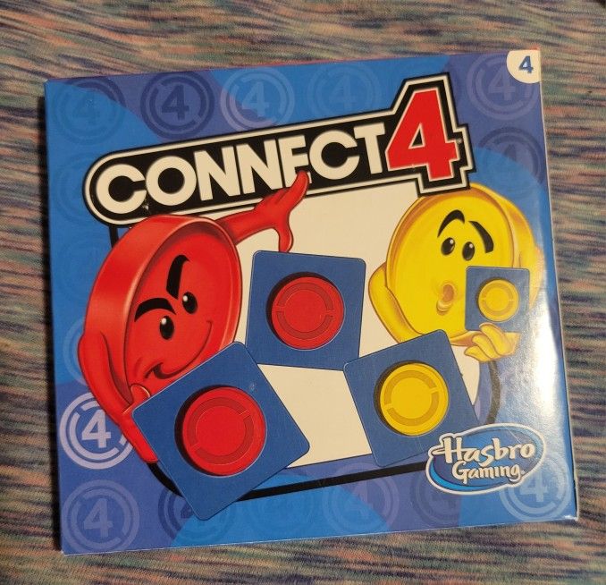 Selling a complete Connect 4 game by Hasbro, McDonald's edition! It's a fun two-player game where you try to get four of your colored pieces in a row. Recommended for children 3 and over. Includes the original box