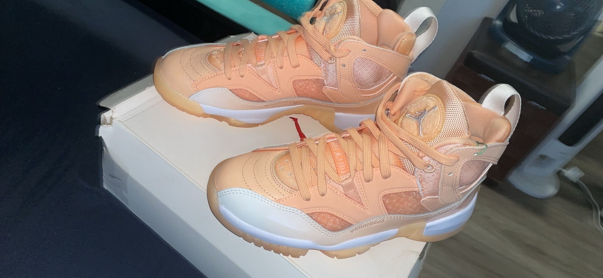 6.5 Used in the house trying to make sure they fit they are halftoe to big I’ll do trades for any Jordan’s 5.5y good condition