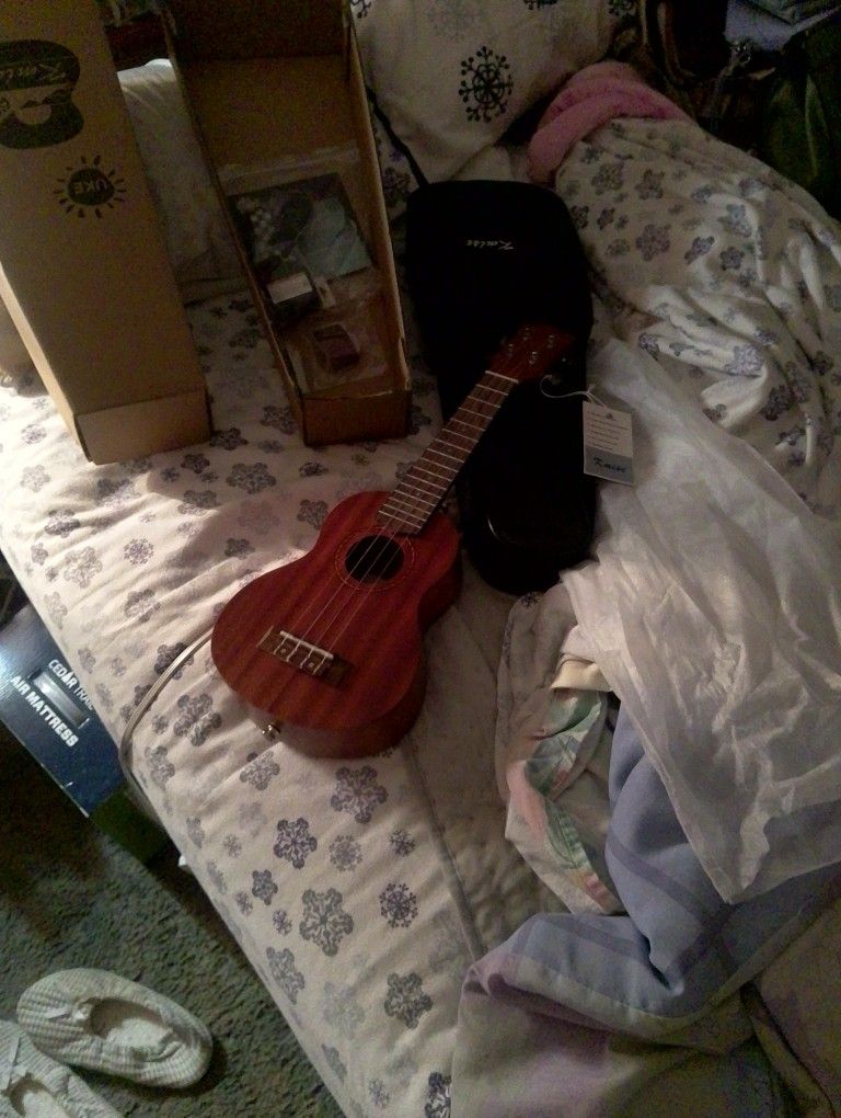 Has nice BackPack carrying case. With extra guitar strings, a tuner, picks. A quick Start - how to - booklet