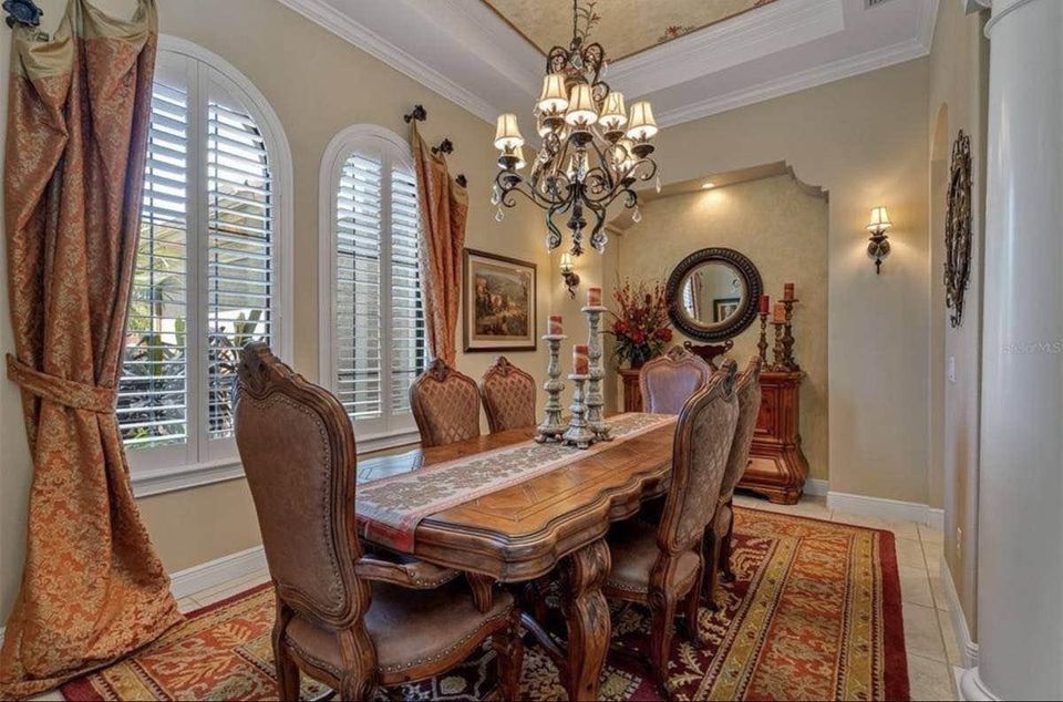 From the Tuscano collection by Michael Amini. In excellent condition. Includes dining table with 6 chairs and China cabinet. Buffet sideboard also available for an additional $1100.