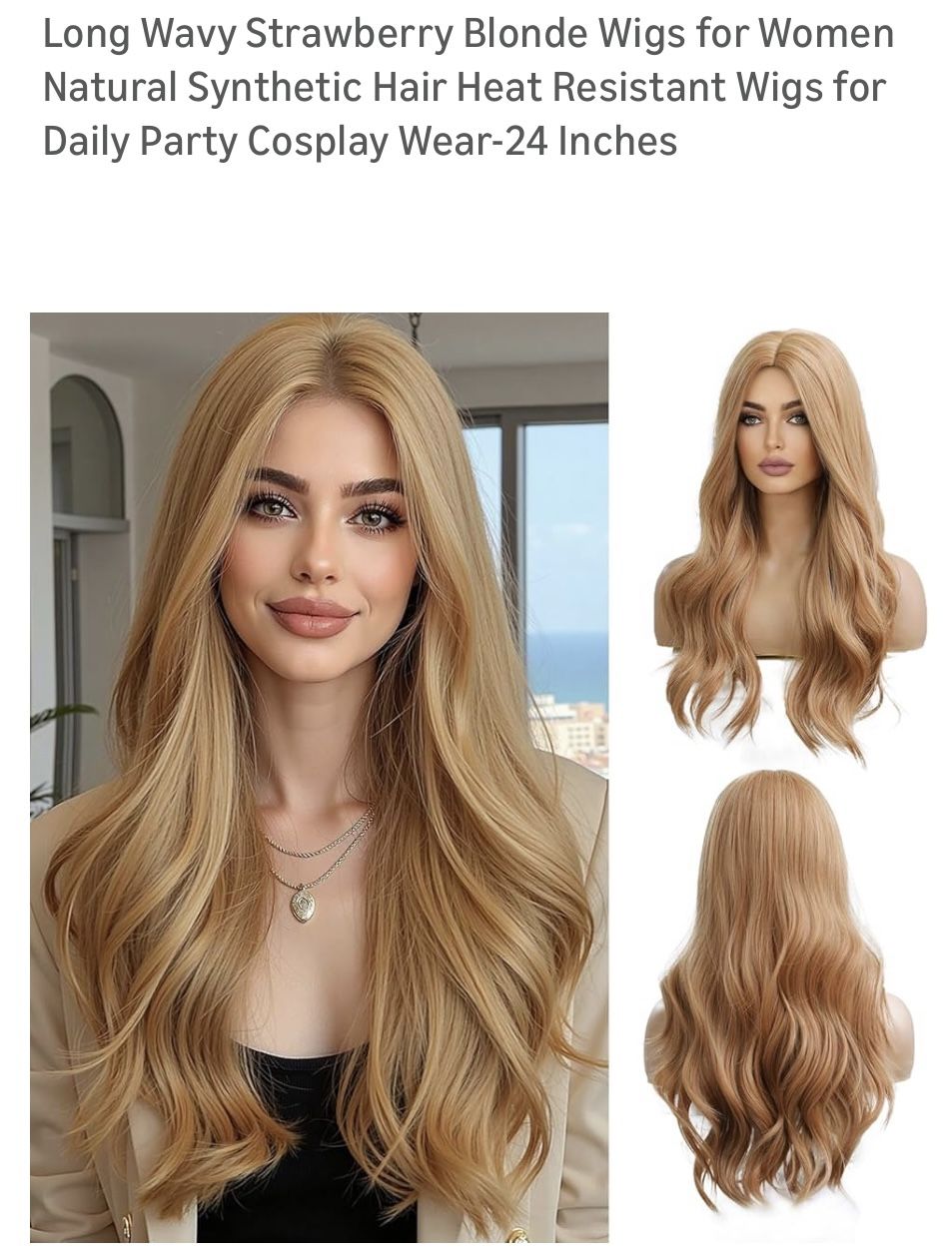 Strawberry Blonde Wavy Wig 24 Inch
