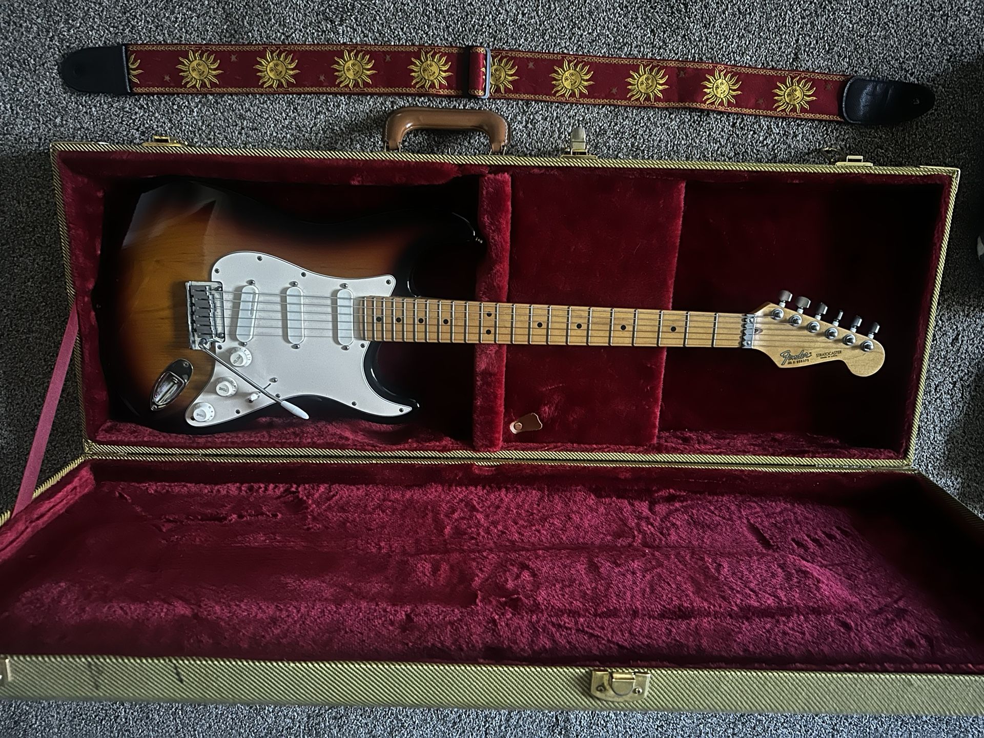 Dark Sunburst Fender Strat in great condition. Barely used.