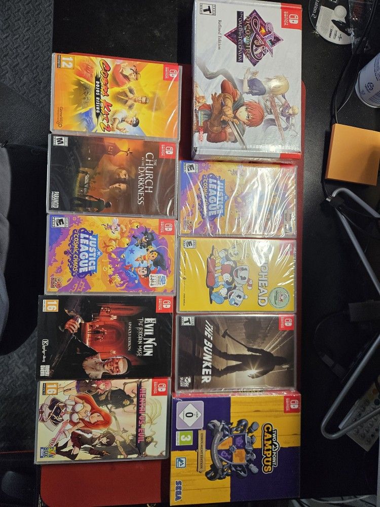 🎮 Here I have a few different brand new switch games. Sealed and ready to be played, gifted or kept for your collection. If interested please message me! 🎮 $20 Cobra Kai 2: Dojos rising 2 point campus (enrollment edition) DC's justice league: cosmic chaos (with keychain) $25 Cuphead - SOLD $30 Evil nun: the broken mask (unholy edition) Church in the darkness The bunker $50 YS Memoire: the oath in Felghana Hentai VS evil 🎮Thanks! All sales are final. No returns 🎮