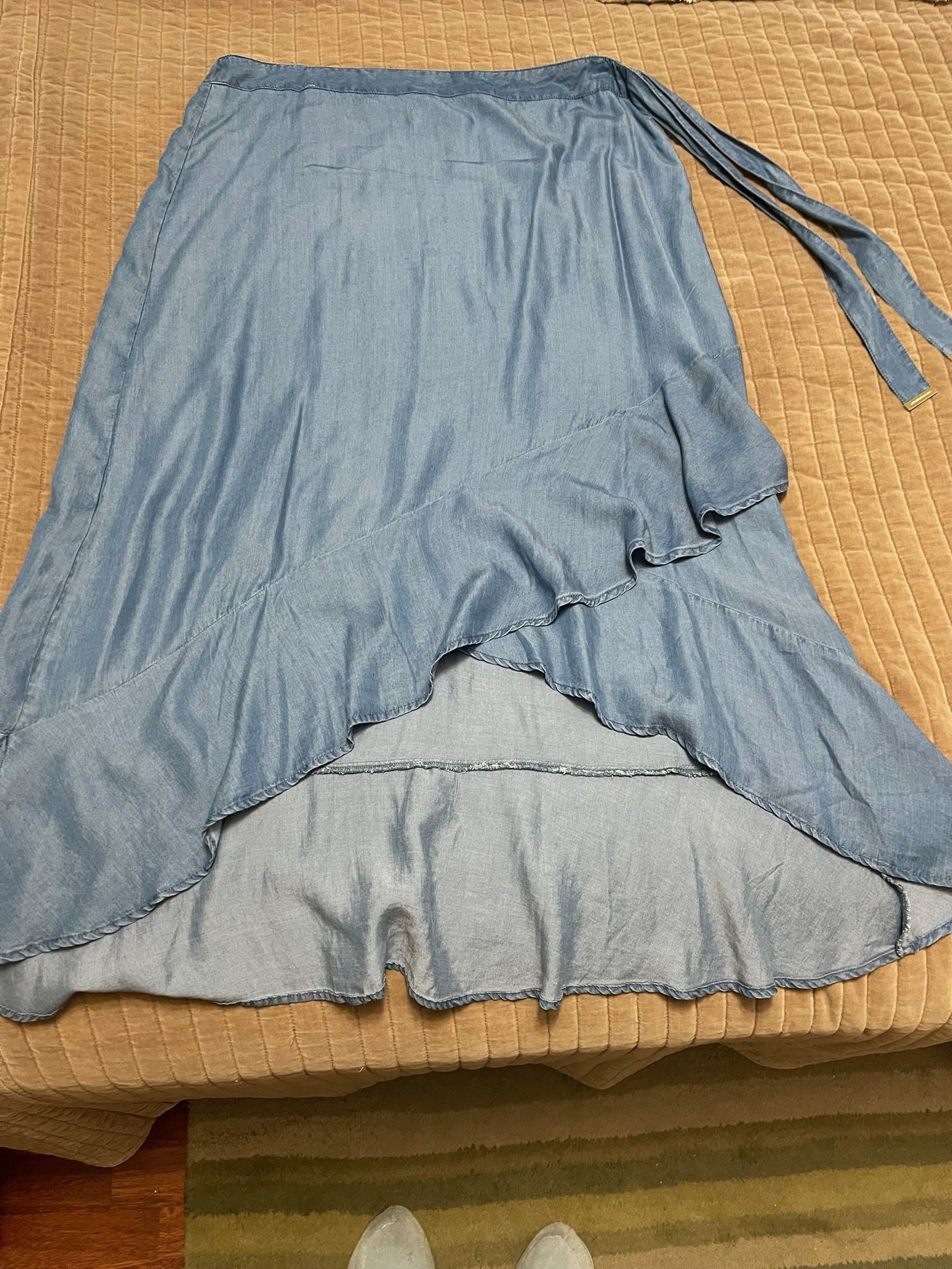 MICHAEL KORS Womens Chambray Hi Lo Blue Ruffle Midi Skirt