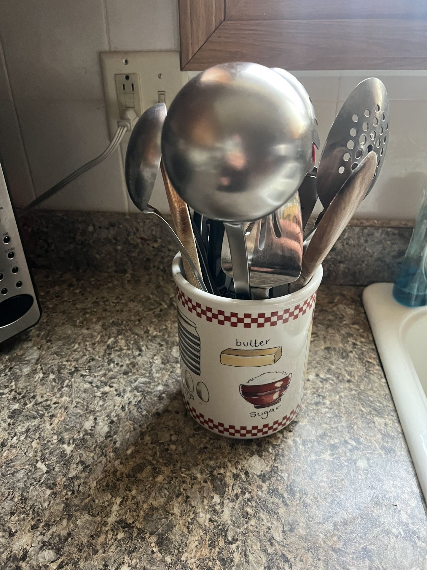 Utensil Holder with Utensils some brands are Kitchen Aid.