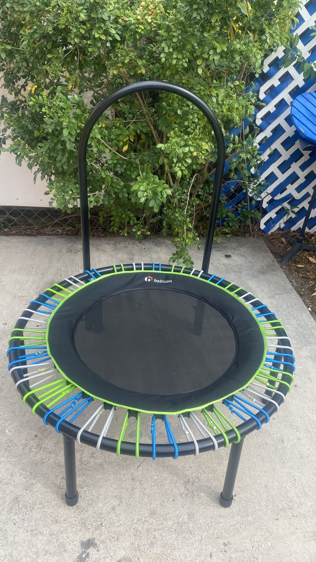 39 inch like new Bellicon Trampoline with quick release support bar 133-198 lbs