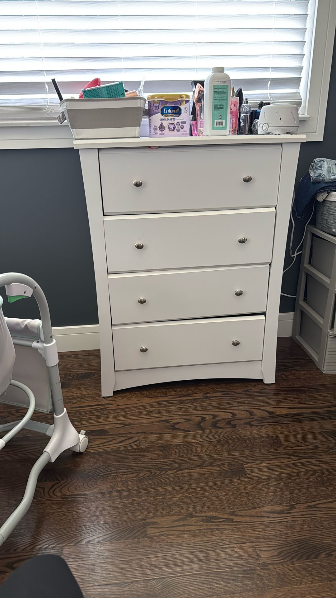 All the drawers open and close perfectly fine. Not broken anywhere. Perfect condition. Has good space inside. Only reason for selling is because I have a new one coming in and don’t have space for 2.