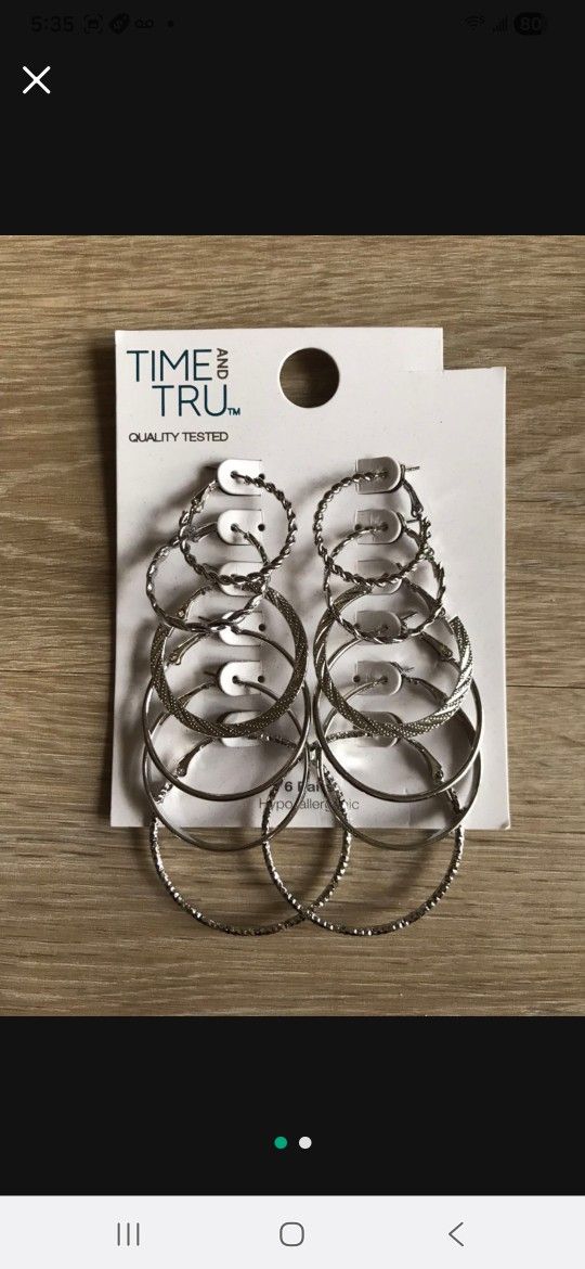 NEW 6 Pairs Of Silver Stylish Trendy Hoop Earrings