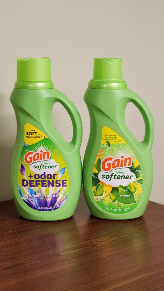 Keep your clothes soft, fresh, and comfortable with Gain Laundry Liquid Fabric Softener and Conditioner. This 44 fl oz bottle provides up to 60 loads, helping reduce static and leaving laundry with a long-lasting fresh scent. Compared to typical retail pricing of $5.47 (Walmart), you will be getting a deal for only $5 each. Scents Available: + Odor Defense (Super Fresh Scent) Original Please feel free to reach out on any inquires on this listing or others. Pickup Only