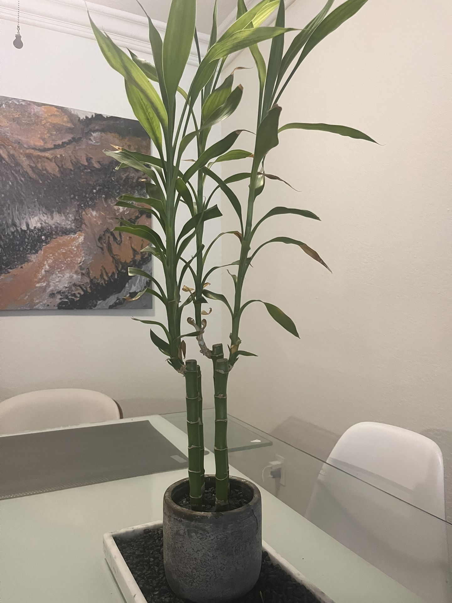 Healthy condition, I must move and give it away π₯². Just needs water 2x weekly. Marble tray with black rocks at bottom is an additional $10.