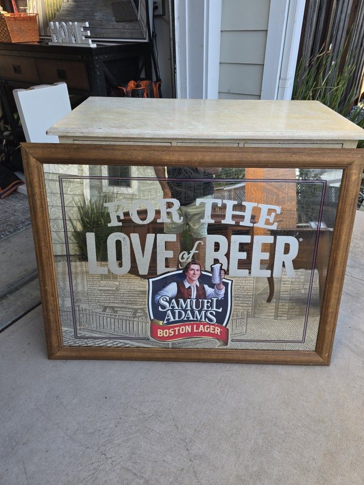 Collectible Samuel Adams Boston Lager "For the Love of Beer" Wall Mirror Picture Frame. Wood frame and mirrored glass in great shape. Pet and smoke free home. Dimensions - Width 42-1/2" - Depth 1" - Height 31-1/2"