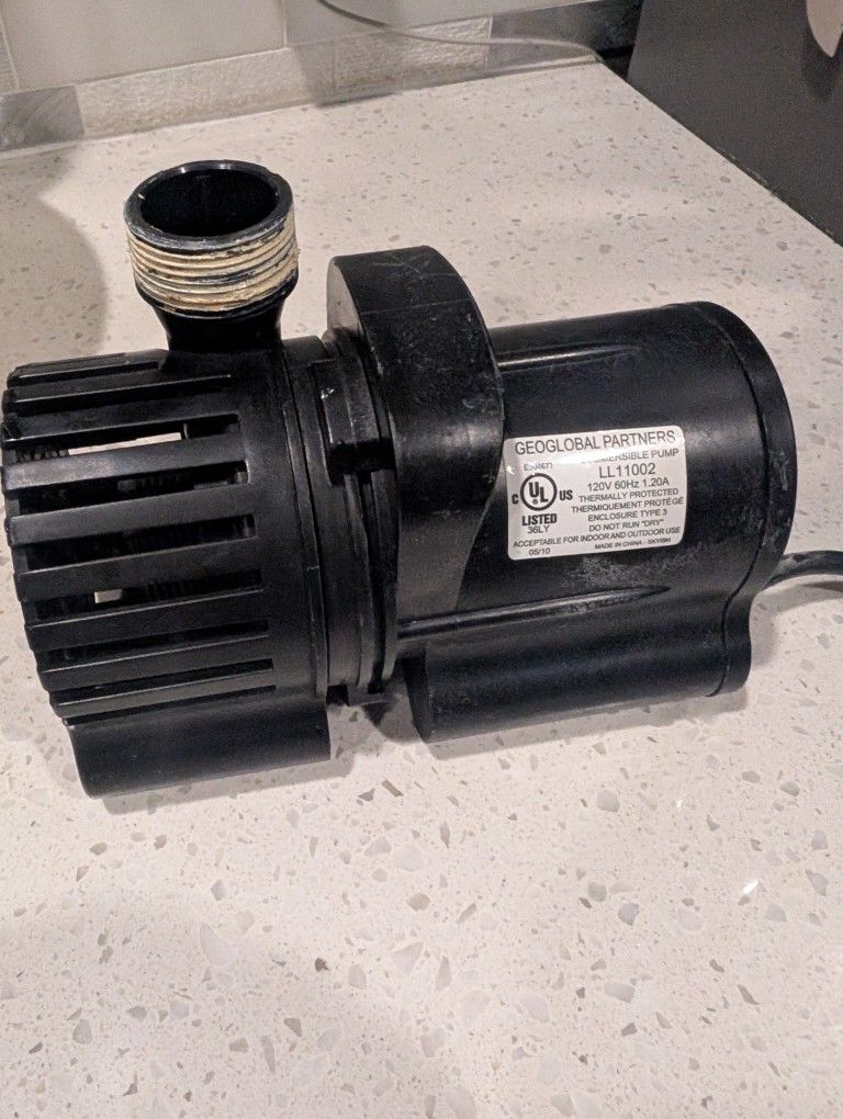 Geoglobal LL11002 submersible pump 1300GPH huge 18ft lift. Efficient Energy saving motor. Enclosed Vortex impeller. Thermal overload trip if over heating occurs. Easy to disassemble without tools. CORD 15 FT LENGTH 10″, WIDTH 5″ , HEIGHT 5″ ELECTRICAL : VOLTS 120VAC, PERFORMANCE A) 1300 GPH @ 0 FT B) 677 GPH @ 7 FT C) 400 GPH @ 12 FT D) 220 GPH @ 15 FT