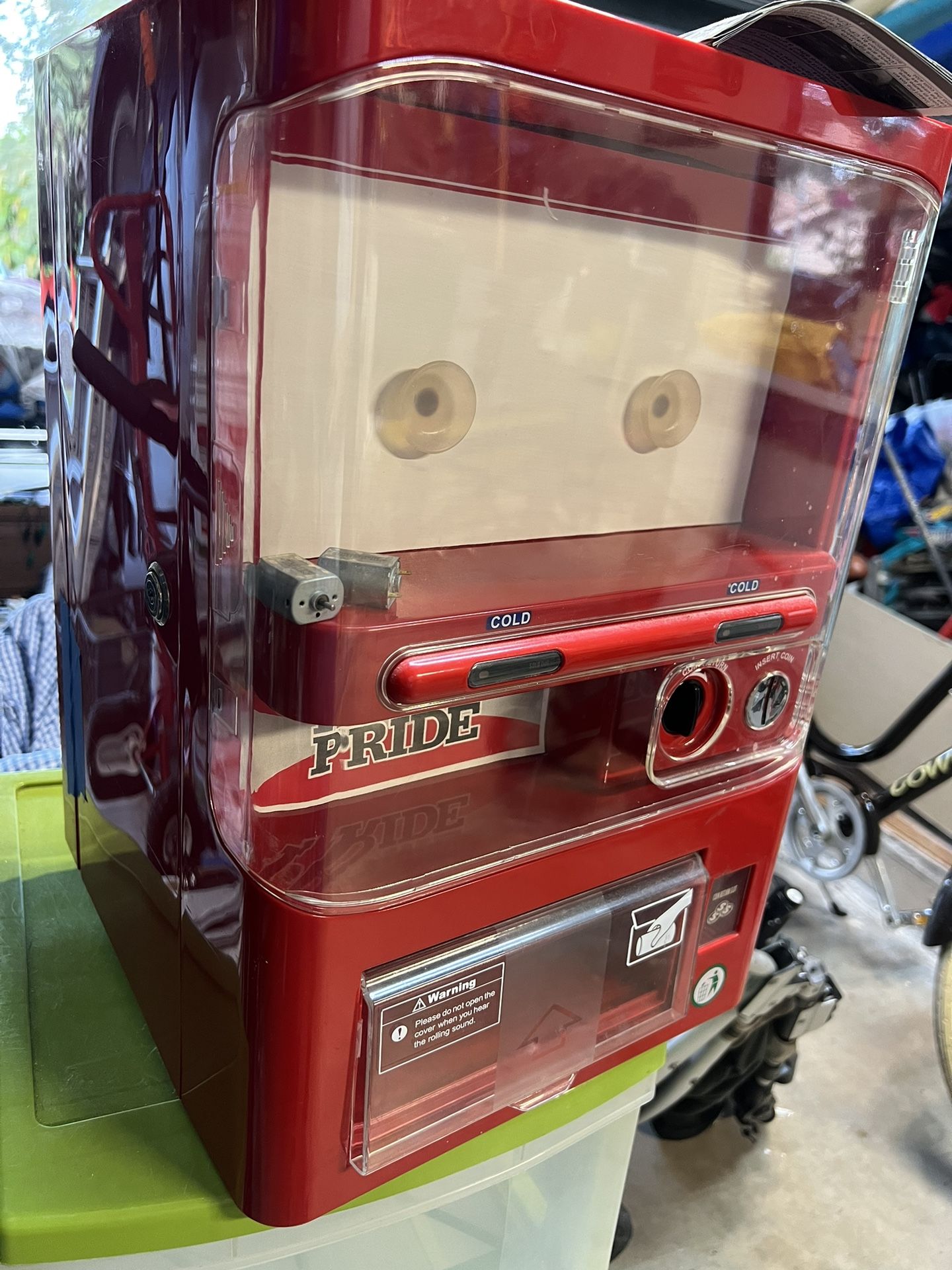Mini machine keeps sodas cool It keeps cans cold. It can be plugged in a 12v car cigaret port or 120 (with an adapter $20). Has LED lights. Beautiful show decoration