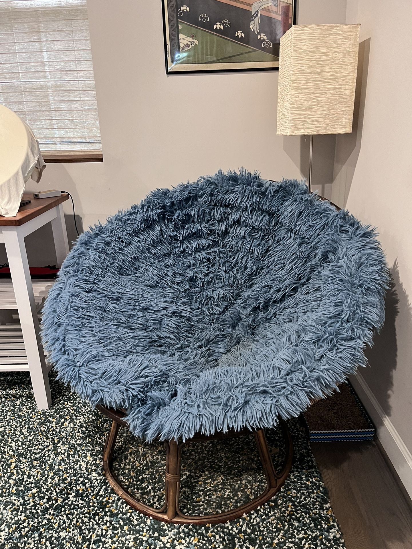Barely used cozy chair, excellent relaxing area furniture or decoration. Both frame and cushion. Purchased from Pier 1 (similarly as the current listing in the 3rd photo)