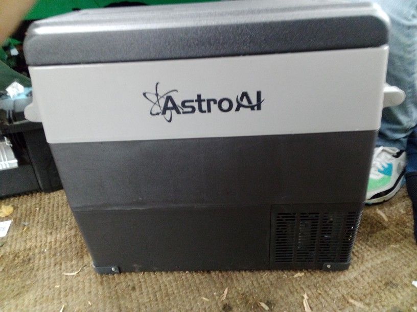 Battery powered cooler that is both a freezer and a fridge. Uses 12 or 120 volt so it can be charged in the car or your house. Lots of room and holds a charge. Minor bumps and scrapes but pretty much In great shape.