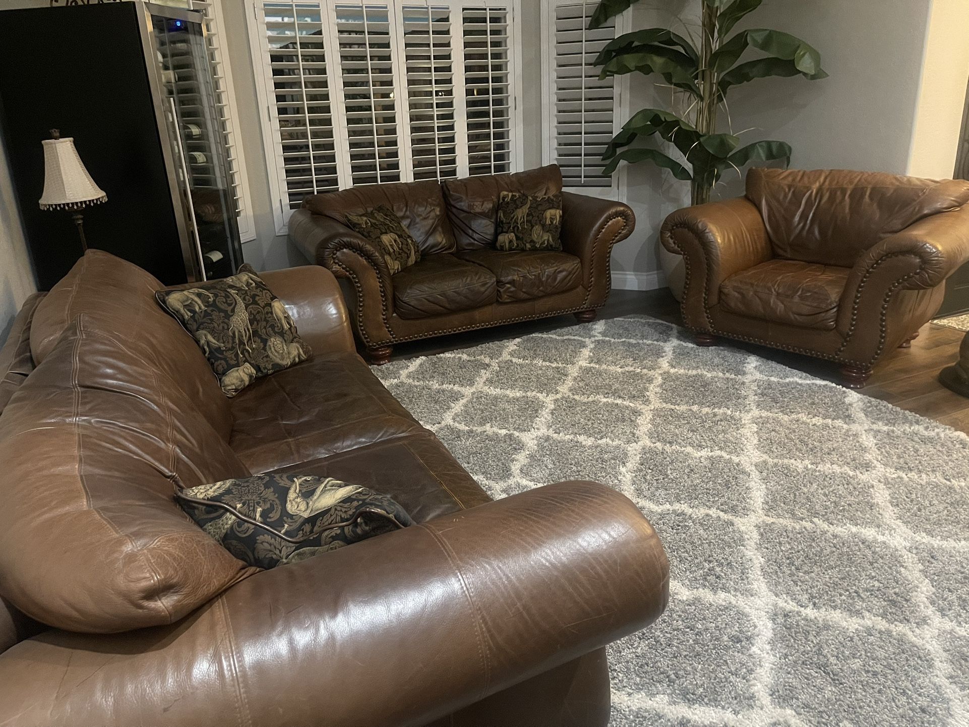 Must GO!! GENUINE LEATHER Sofa - May Consider Breaking Up Set-(See Description For Measurements) Includes Ottoman & Pillows