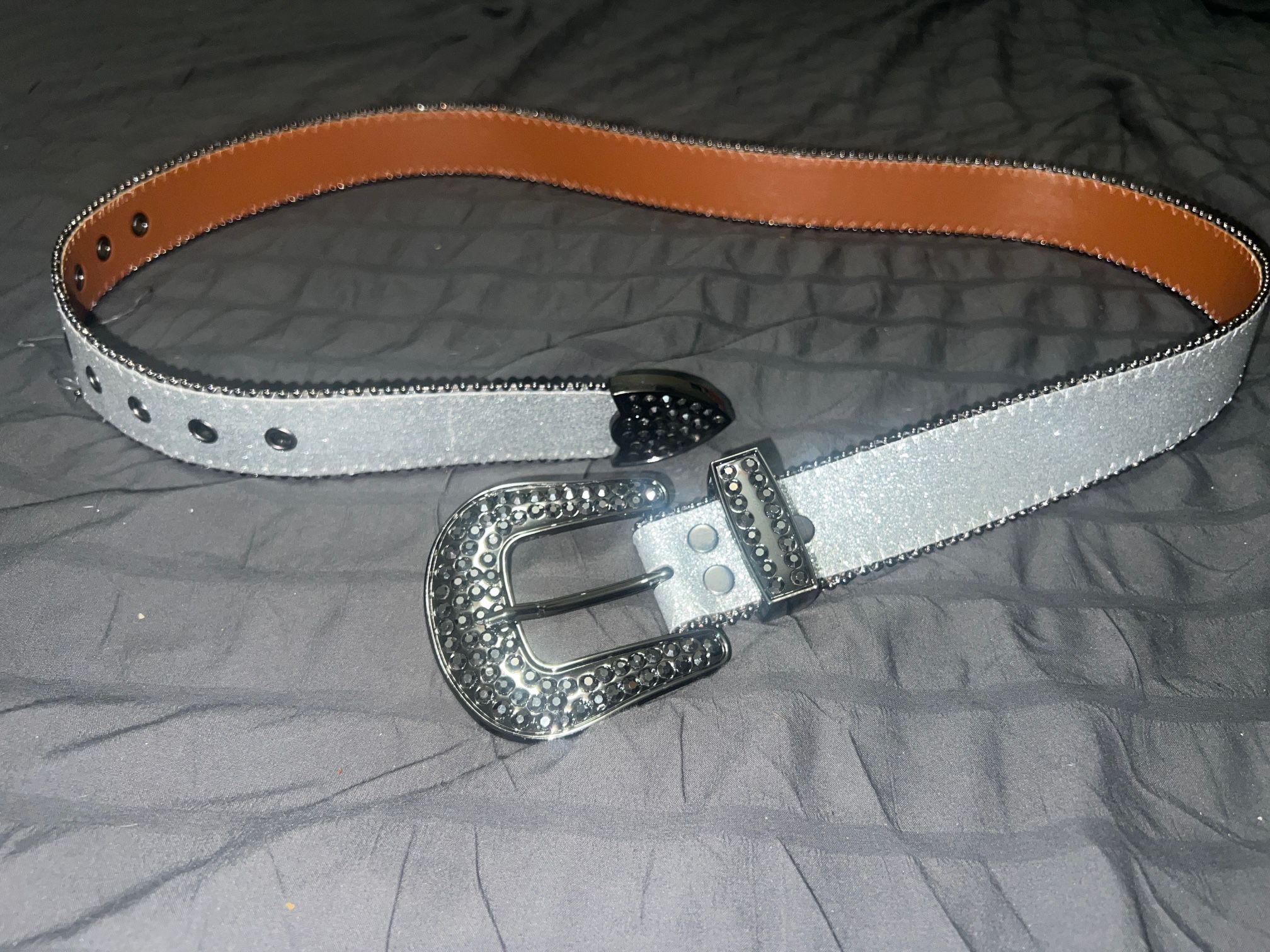 2 belts for sale, both belts in good condition just a missing jewel on side of belt from pants loop. 1 belt for 100, both for 150 obo
