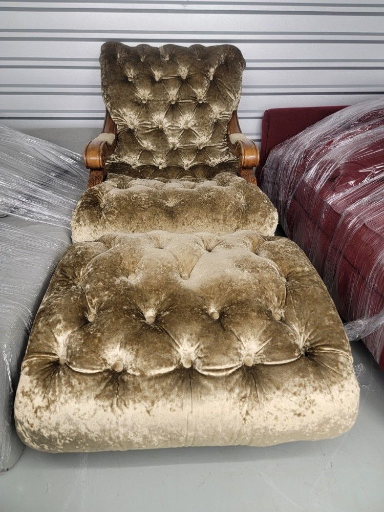 Selling Gold Tufted Velvet Curved Back Chaise with Ottoman. Asking $100 or best offer. Text me at (contact info removed).