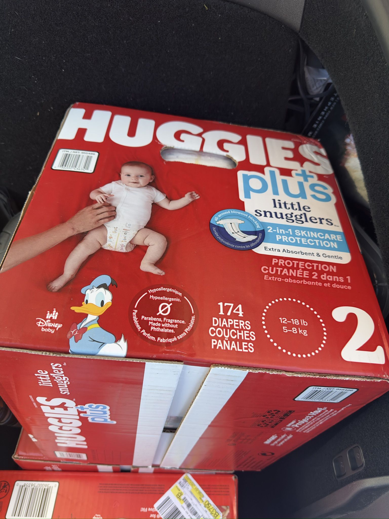 2 - 174 count Huggies plus size 2 diapers extra from my bay shower and bay sized up.