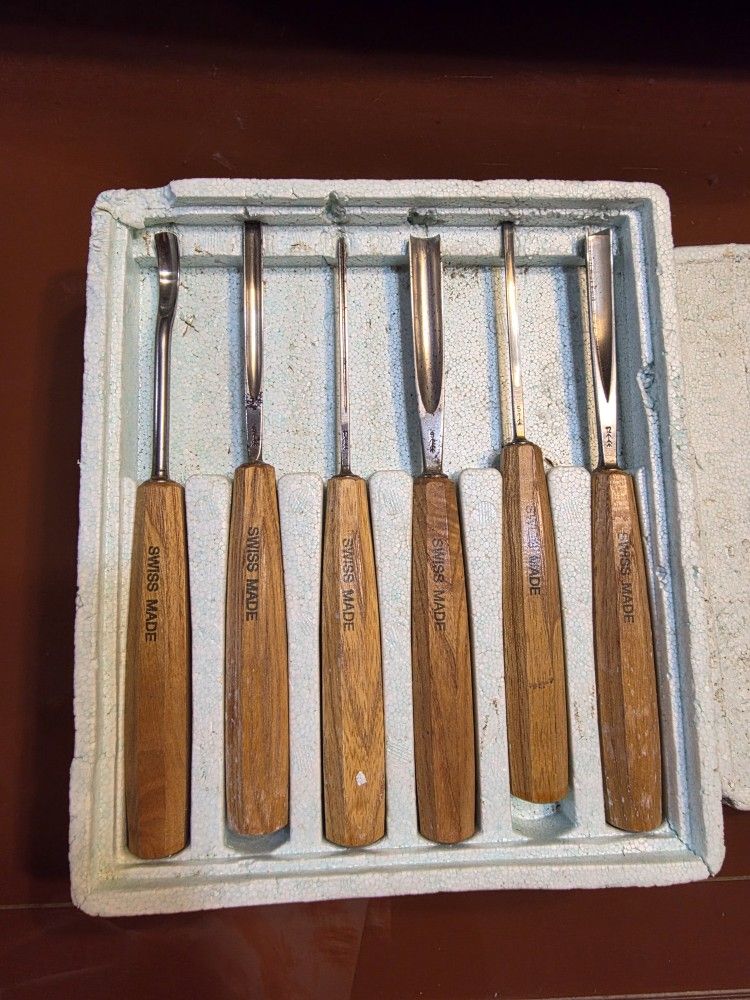 6 Pfeil Swiss Made Octagonal Ash Handled Carving Chisels Tool Set with OEM Box Set is in great shape never used very high end set Pickup in Inverness Florida 34450 Or can ship for extra