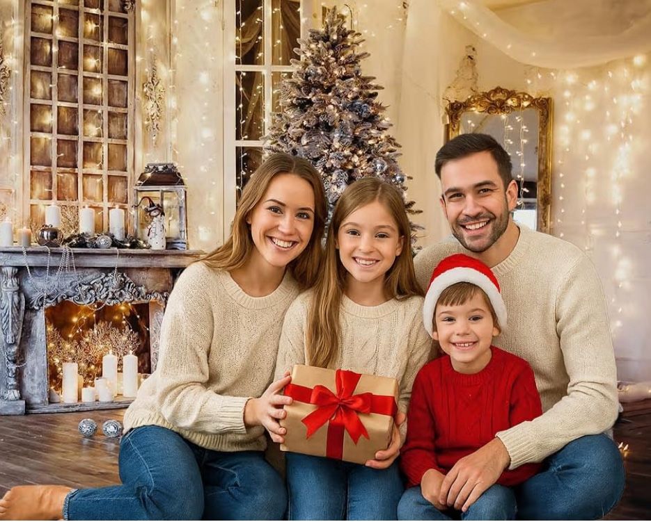 Dudaacvt 10ft x10ft Christmas Backdrops for Christmas Tree Photography, Fireplace, Photo Background, Decoration