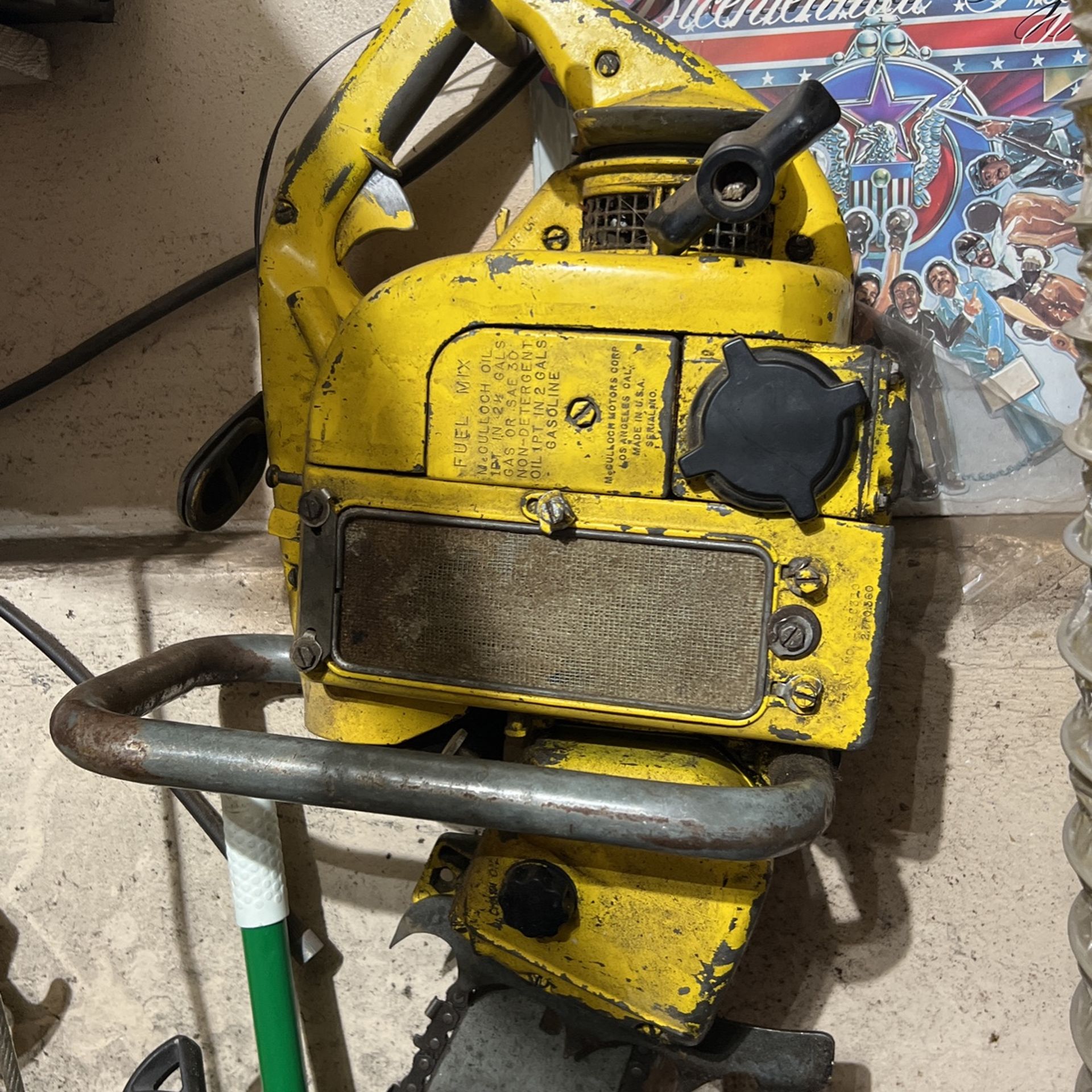 2 mcculloch chainsaws from the 50’s one will run other needs a little cleaning up on
