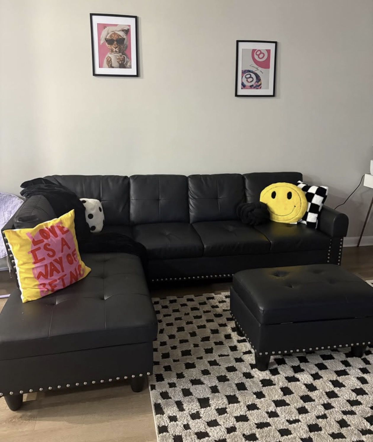 BLACK LEATHER sectional - Storage Ottoman Included π€π€