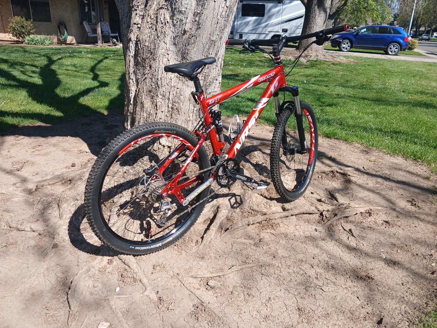 Vintage 2004 Giant NRS 2, 26" full suspension Mountain bike. Has all new sprockets front and rear, ceramic coated rims, new tires, new spike pedals, specialized handlebars , new grips. Very well taken care of.