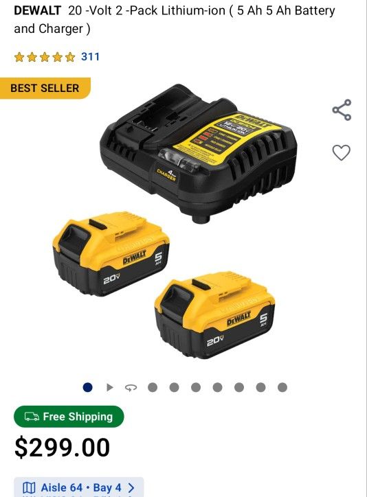 Dewalt 20-volt 2-pack lithium-ion battery pack with charger