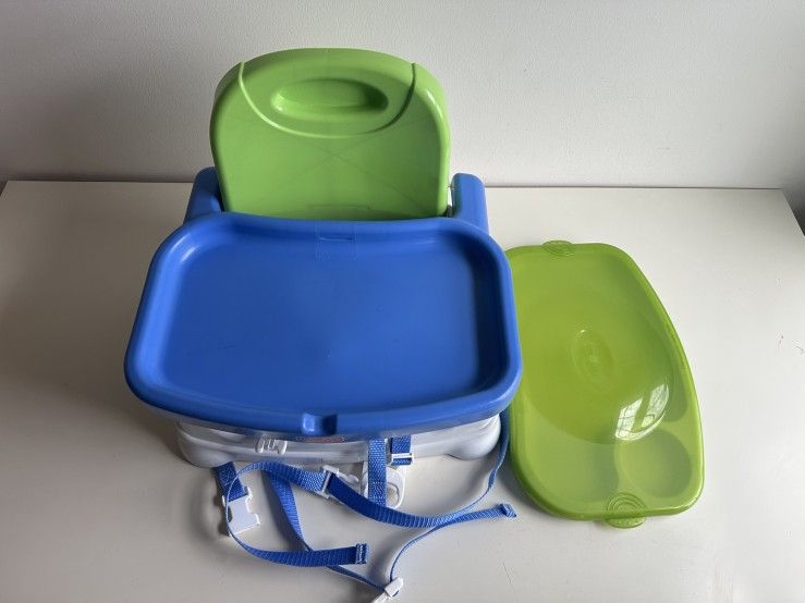 Essentially New, bought for travel but only used once We have another one and cannot recommend more! $40 new and currently out of stock at Amazon. Link to product details: https://offerup.com/redirect/?o=aHR0cHM6Ly9hLmNvL2QvMGc3MVNiVXQ= Why we love it: cleans easily, 3 adjustable heights (we used for our kids from 6 months to 3 years) and never had to buy a high chair, dishwasher safe, converts any regular chair into a high chair.