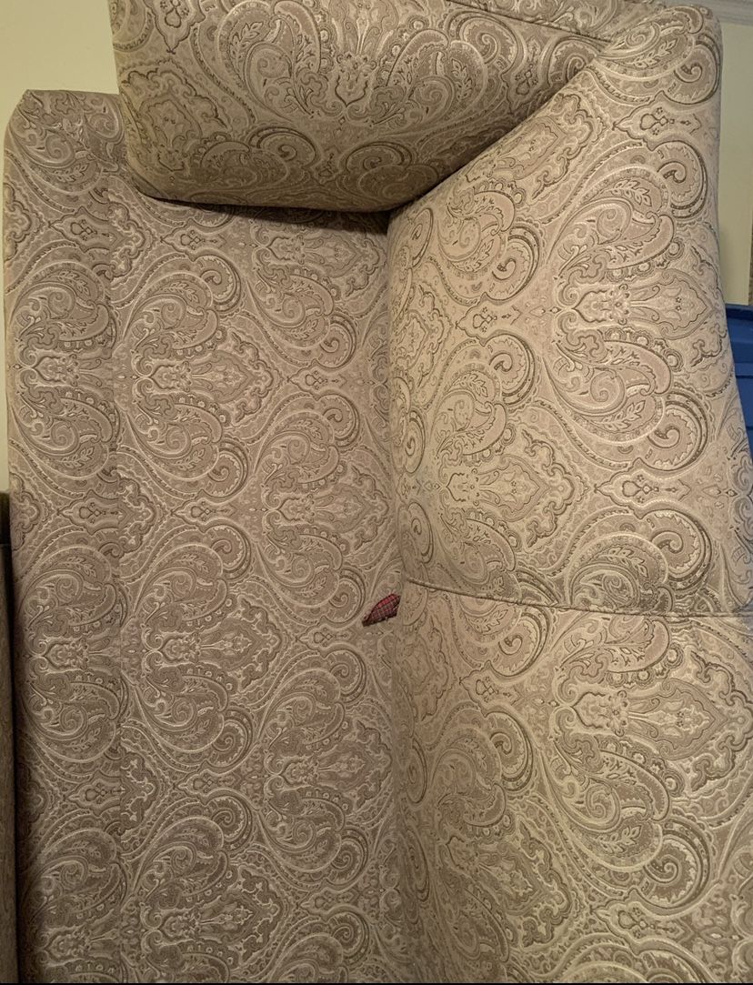 New Reupholstered COUCH,LOVESEAT dining room table , 6 chairs same print as couch and loveseat , coffee table and 2 end tables all like new .